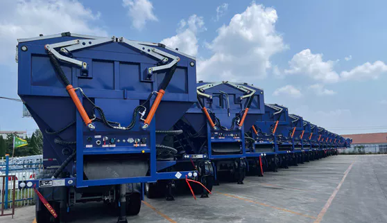 2014年成功硏发岀具有自主知识产权的国家发明专利产品“智能输送带卸货车”该产品具有智能自卸、安全可靠、迅速快捷、寿命超长、适用广泛等特点,能满足国内工况的特殊要求,可与各种品牌的牵引车配套使用。